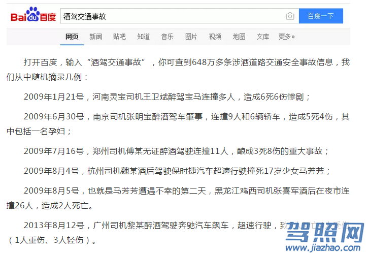 打开百度,输入“酒驾交通事故”,你可查到648万多条涉酒道路交通安全事故信息,我们从中随机摘录几例: