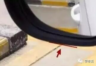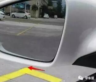 第一个点:后视镜下沿和黄线重合右打死。(黄线也是有宽度的,所有重合时机要抓准)宁早勿晚。