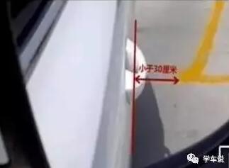 第二个点:控制好速度同时观察右后视镜,把握好库角和车身的距离,30cm为最佳。