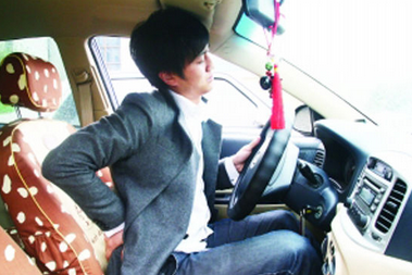开车坐姿不良:有些开车族喜欢将座椅尽可能向前或向后调,其实都不是正确的驾驶姿势。座椅太靠前,四肢及腰部肌肉处于持续紧张状态,长时间处于这一姿势容易造成四肢及腰背肌肉酸痛;而座椅太靠后,易引发椎间盘突出,而且腰背肌肉长期处于拉长状态,容易引发肌肉疲劳性损伤。其实要掌握正确的驾驶坐姿并不难,座椅面应略微后倾,调整椅背,与椅面成100-110度夹角(简单的方法是在垂直坐姿的情况下,椅背头部靠枕调整至与枕骨2-3拳距离),而座椅的前后调节应与驾驶员的身高、体型相关,一般以双上肢握方向盘,肘关节屈曲呈50-60度;双下肢自然搁于踏板,膝关节自然屈曲呈60度左右为宜。臀部尽量靠后,在腰部可以垫2-3寸厚的腰垫,既保持腰椎前凸的正常生理弧度,又对腰部有一定的支撑作用。