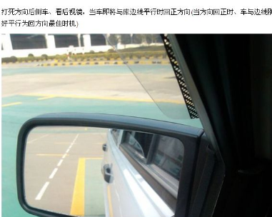 4、观察后视镜, 回正方向后,在稍微修正,到点位进行倒库。