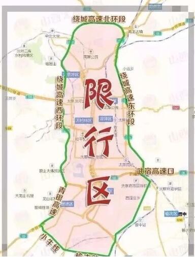 绕城高速东环段、太榆路(武宿高速口至晋中段)以西,绕城高速北环段以南,绕城高速西环段、青银高速(太原罗城至清徐段)以东,小牛线、榆古路以北(不含上述道路)道路范围内。