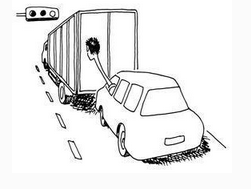有的路口不仅安装了主信号灯,路边也设有辅助信号灯。如果前方有大车遮挡视线,驾驶员一定要放慢速度,拉开距离,观察两边的辅助设施等看清信号灯之后再通过。