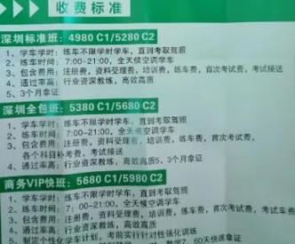 注意:在深圳考驾照千万不要报外地班。我同事就是轻信驾校的人说报外地班拿证快,报了一个外地班,学费是6800,而在深圳报本地班4300—4600左右,足足贵了2000多。