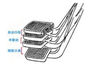 当发动机的声音开始变化,车辆发生轻徽震动的同时,离合器踏板即会有顶脚的感觉产生,这时的离合器正处在半联动状态。