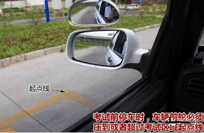 4、倒车:打右转向灯,挂倒挡,缓慢抬离合,当车子走动时左脚保持不动。观察右后视镜,当看到右后轮与前库线对齐时,往右打满方向。