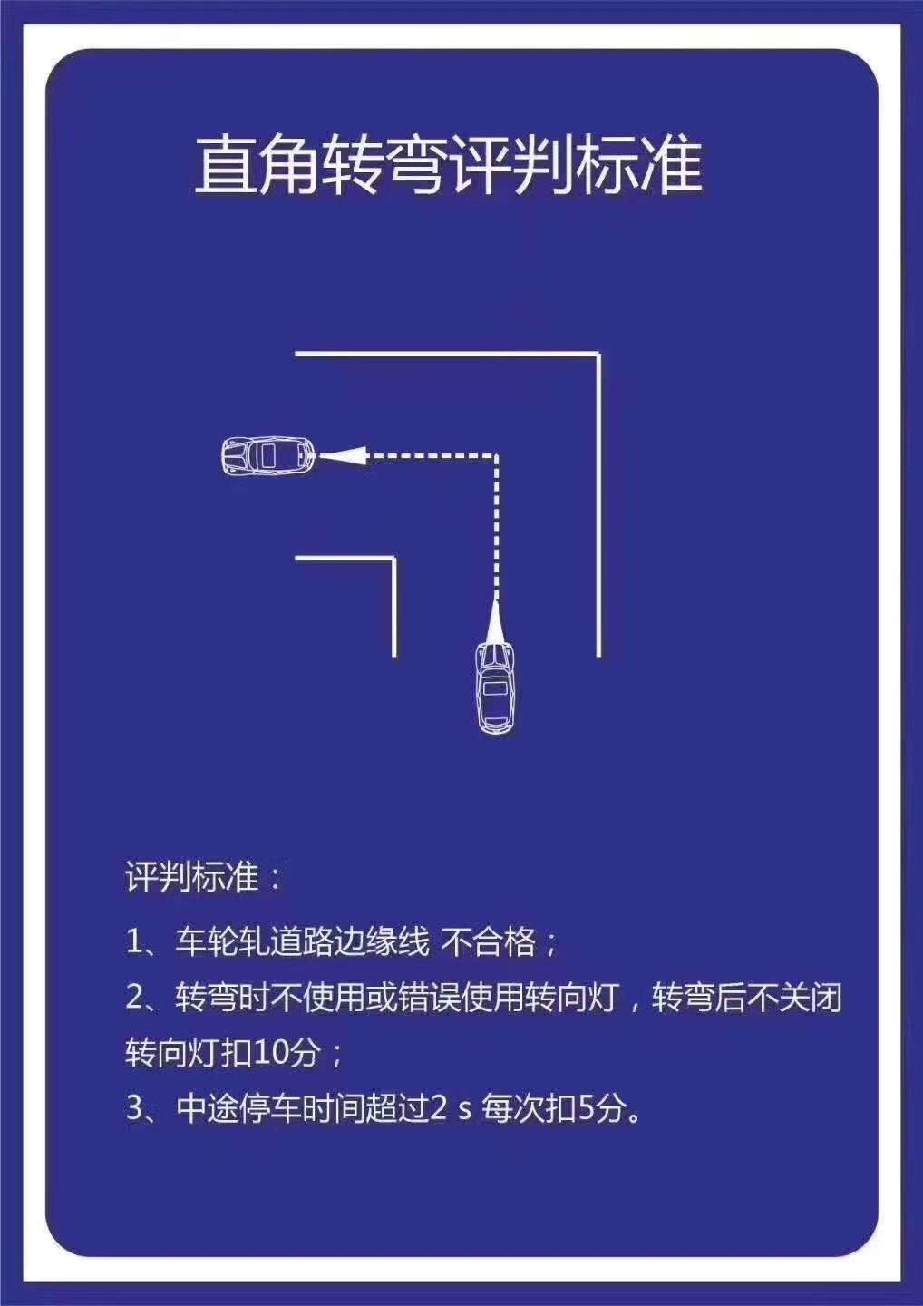 1、转弯前,一定尽量靠外侧行驶。等车头即将到达对面边线时(约50公分-70公分)开始向内打方向,看前面的同时再观察后视镜,感觉车的中部快要过直角的顶点时则慢慢回方向,再慢慢将车头修正。