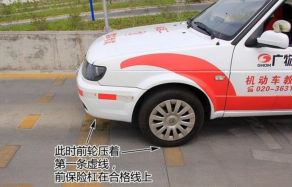 2、观察引擎盖右侧1/3的点,当与路边线重合时,就是车身与路边距离30cm左右。