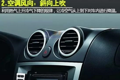 我的一个朋友和我抱怨,他车的空调明明每次调到19℃了,但是还是感觉不是很凉,开始我听他这么说第一反应也是认为它的空调有问题了,但是后来有一次坐他的车我才发现不是人家空调坏,是他不懂出风口的朝向很重要,我发现他整个车的出风口朝向都是向下的,并且从我坐上他的车到下车整个过程都是这样,这正是他的症结所在啊!其实冷空气比热空气重,如果你的出风口一直是朝下的,那冷空气吹出来后就直接下沉了,那你车的中上部分的空间压根就没有冷风到,你觉得这样开空调有用么?正确的做法是将空调出风口向上调到最大角度,并且同时打开内循环,这样才会冷啊!
