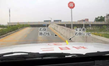 语音系统提示操作时,就打右转向灯,方向盘往右打,观察右后视镜,当车身离路边缘线不远时,就看引擎盖的地方,当边缘线刚好就在引擎盖的右侧1/3重合时,这个时候车身与路边边缘线就在30cm以内了;当车辆到达停车点位时,立马踩下离合和刹车,这个操作速度一定要快,车辆停稳后就要进行坡道起步操作了。