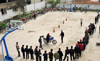 4、科目二考试,绕桩,在一条直线上,有三个杆子,要求以S型绕过三个杆子,然后再绕回来,过程中脚不能落地,车子不能熄火,车子不能压黄线。平时自己练一下,在考试时速度稍微慢一些,稳一些,不要紧张。还有的有土路、上坡、直角弯路、单边桥、蛇形路、起伏路等,考的可能都不太一样,一般都是绕一圈就过了。上坡的时候按道理是要在上面停一下的,不过一般没人管,上去的时候速度放慢点就行了。这些在考摩托车驾驶证流程需要多注意的。
