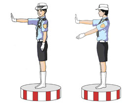 23. 如图所示的交通警察指挥手势是示意车辆______。