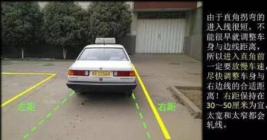 (2)等到车到达拐角时根据车速方向盘打死。