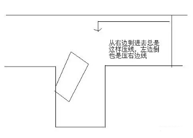 一、早打方向盘的话,右倒库时车轮会离库角较近,或者倒进库停车后就会是左宽右窄的问题。如图所示: