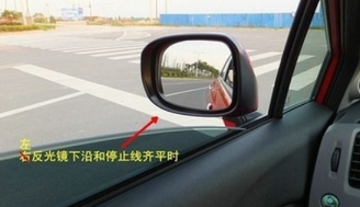 因为驾驶员位置靠左,因此预判右侧车轮时的方法与左侧稍有不同。当右侧车道白线与机器盖中央位置重合时车辆就基本轧线了。