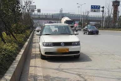 5、向左回转方向(第三把轮,车正轮正)迅速停车。在车辆近停时,稍许抬起制动踏板减缓刹车惯性,平稳停车。