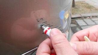 5、刮伤较深的伤痕,重点是需要观察金属面是否露出,如果看不到金属面就不会生锈,只需要专心地涂上修饰漆即可。