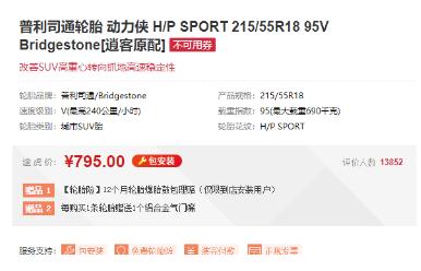 普利司通轮胎:225/55 R17 97W——519元/条;