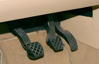 其次,只要不加油或稳油,一定要把右脚移放到刹车板上,这必须成为一种本能。(千万千万,不要养成不加油时把右脚直接放在驾驶室地板上作轻松状的习惯,这样的后果是紧急情况时右脚或找不到或找不准刹车,极易出现误把油门当刹车的情况。)