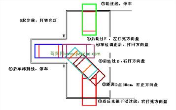 2.进库时会出现右(左)后视镜中前门外把手与右库角的距离小于3O公分,在10cm左右时,往左(右)回一圈半,当车身前门把手与库角平齐时,迅速将转向盘向右(左)打满,然后继续同上进库。