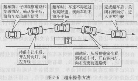 如图7-6所示,超车的操作方法是: