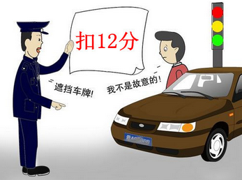 上道路行驶的机动车未悬挂机动车号牌的,或者故意遮挡、污损、不按规定安装机动车号牌的记12分,罚款200元。A、B类驾驶证会因此降一级,C1及所有类型的驾驶证都会被暂扣驾驶证,参加为期七天的学习和考试,通过考试的才能拿回驾驶证。