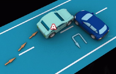 (十五)超越前方正在掉头车的,图中所示为A车负全责。