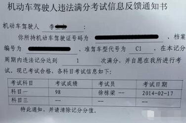 3、考试合格后,记分予以清除,发还机动车驾驶证。