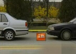 看见前车后保险杠上沿,你距前车为1米