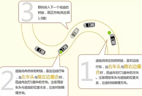 2、曲线行驶技巧图解: