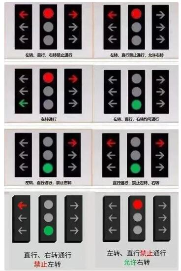 1、当圆盘灯和箭头灯都是红灯的时候,禁止任何方向的通行。