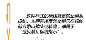 在一些不允许转弯或掉头、又没有设置标志牌的路段,车道上可能会施划一种黄色的禁止标线,警示驾驶员此路段不允许掉头或转弯。禁止掉头或者禁止左转路段掉头转弯,将扣3分,罚款100-200元。各地规定有差异,以当地交规细则未执行标准。
