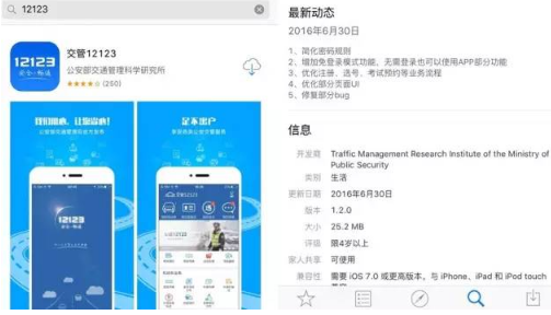 2、苹果手机可以通过苹果应用商店(App Store)搜索“交管12123”或“12123”下载安装。