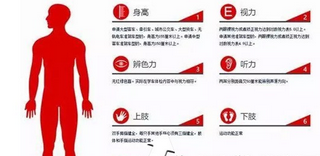 身高、视力、辨色力、听力、四肢和躯干颈部运动功能等。如果有特殊情况需要的指定的医院进行体检。