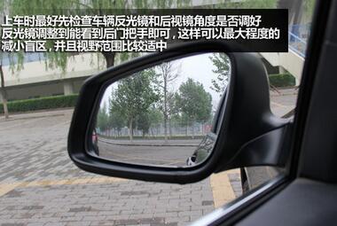 在曲线行驶中,使用反光镜将起到很好的辅助参考作用。可将两侧镜子最大限度的向下、向内侧调整,以便于清楚地观察到后轮与S弯道边线的距离,及时调整方向和车速。