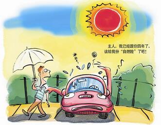 建议:虽然是钢铁之躯,但汽车和人一样,长时间放置于太阳下也会是爱车受不了。长此以往,会伤及爱车的漆面,对内饰的伤害也是极大,所以千万不要将爱车中暑,尽量把车停靠在阴凉的地方或者地下的停车库!