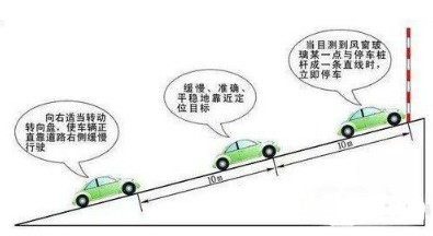 上坡时,最为重要的就是观察右后视镜,车身和边线的距离,必须要保证在三十里面内。同时也应该观察左后视镜下方,如果左后视镜下方可以和控制线重合在一起,就应该迅速的踩下离合器和刹车。