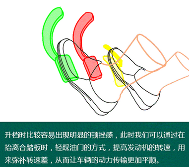 我们既然知道了发动机转速和离合器片转速之间有转速差,所以就应该了解如何去弥补,让车辆在换挡时,更加平顺。