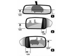 右侧后视镜调整要领:把水平线置于后视镜的2/3位置,然后再把车身的边缘调到占据镜面影像的1/4。