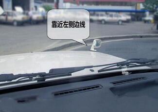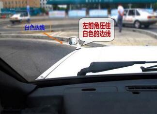 3、左打一圈后,始终要观察车头左前角压住边线行驶,如果有偏离,方向盘控制在90度之间修正,压住边线行驶即可。