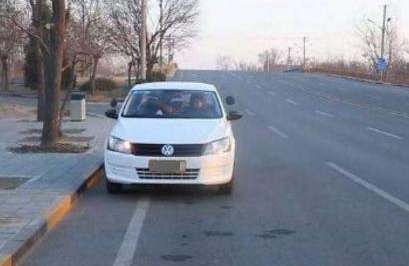 观察车身右侧与马路边缘或马路牙子之间的距离,进行调整。