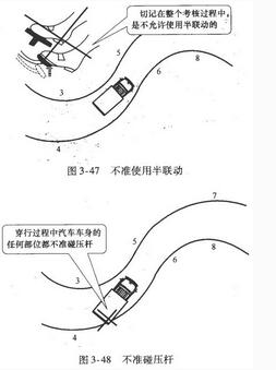 科目二曲线行驶通过要求:车辆从弯道的一端前进驶入,减速换挡,以低挡低速从另一端驶出。行驶中不得挤压路边缘线,方向运用自如。