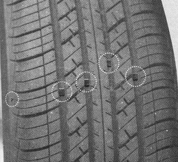 每条轮胎胎面的沟槽里都会有磨损标识,一般家用轿车的磨损标识厚度为1.6mm,如果您的轮胎花纹和磨损标识一边高时,说明该换胎了。
