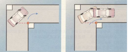 直角转弯技巧三:一挡通过,不加油门。驶入考场时尽量紧贴右侧路沿儿。正前方的路沿儿一旦被引擎盖挡住视线,就要向左猛打方向,直至打到底。看到车头对准出口,就迅速将方向回正。