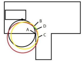 2.顺倒:库内车辆半离合状态慢慢出库时,当驾驶人身体与库前边线一致时,向左打方向(大约一圈又四分之一,方向盘在在一点钟的位置),继续前进,当车在库左边停车线处停车,这是车身也正,不用动方向,原路返回,还是观察车身与库左前角的关系(距离小于20-30公分适当回些方向,距离大些则不用管),当库左边线完全出现时,立即回正方向,当库前线在左后视镜下沿时停车即可。