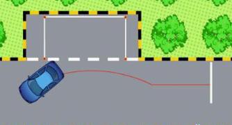 2、用半联动起步,沿停车位慢速平行前进,车尾离1号线约1m时停车;