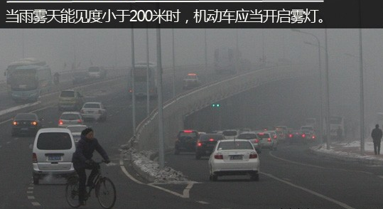 雾灯使用条件―――能见度低于200米的高速公路
