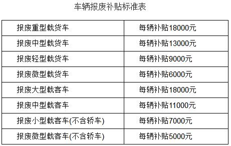 车辆报废补贴具体标准