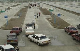 直角转弯算是比较简单的一个项目,其中的“易挂点”则是打方向转弯的时机——方向打早了,后轮就会轧到车道内侧角,方向打晚了,车前角则会超过车道外侧边线。