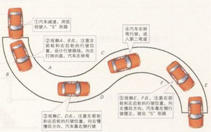 3、在进入A点的位置的时候,汽车和道路右侧需要保持0.5m上下的距离,恰当修正方向。
